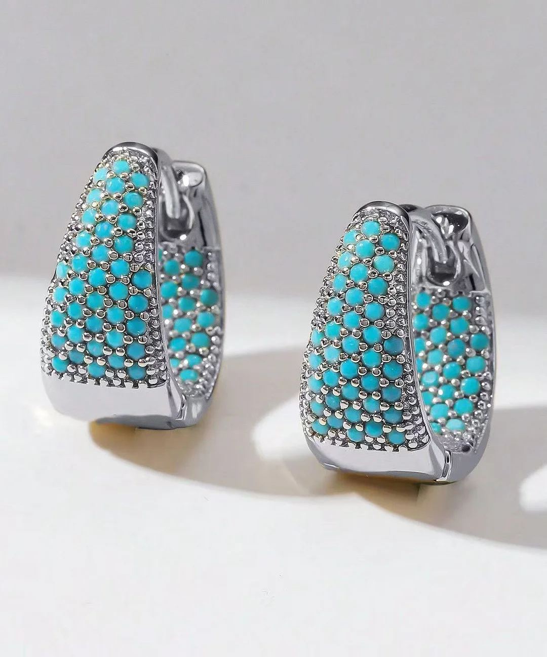 Customer ReviewsArt Green Sterling Silver Overgild Turquoise Zircon Hoop Earrings