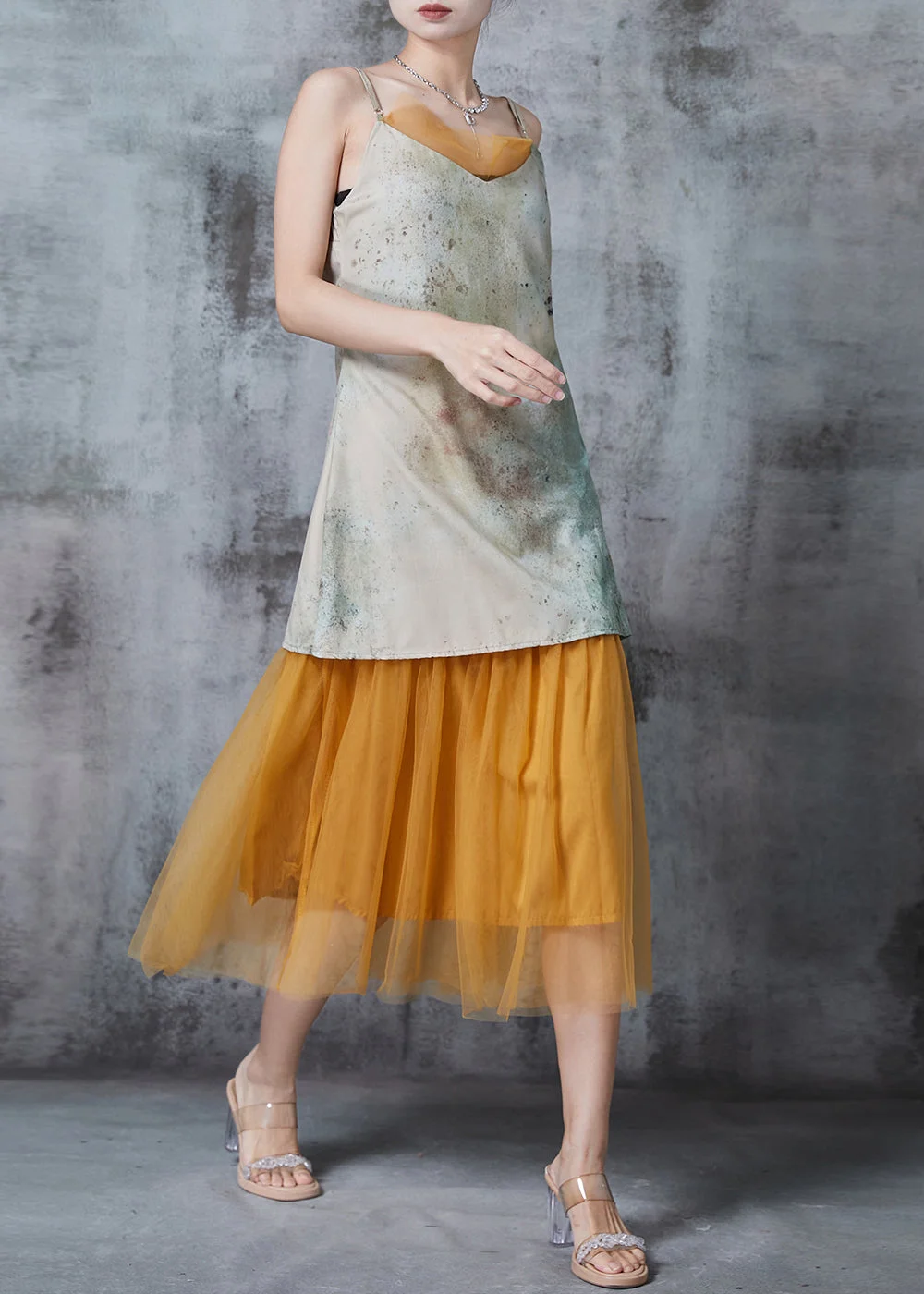 Customer ReviewsArt Print Patchwork Tulle Spaghetti Strap Dress Summer