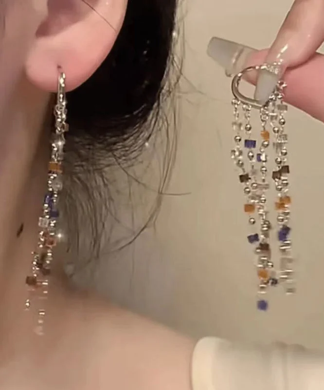 Beautiful Rainbow Metal Crystal Block Tassel Drop Earrings
