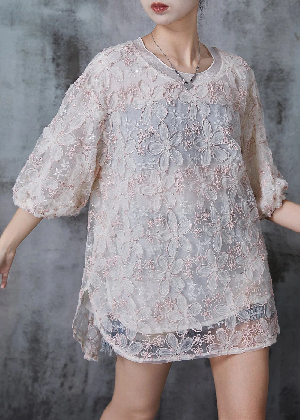 Customer ReviewsElegant Light Pink Embroideried Floral Tulle Tanks Summer