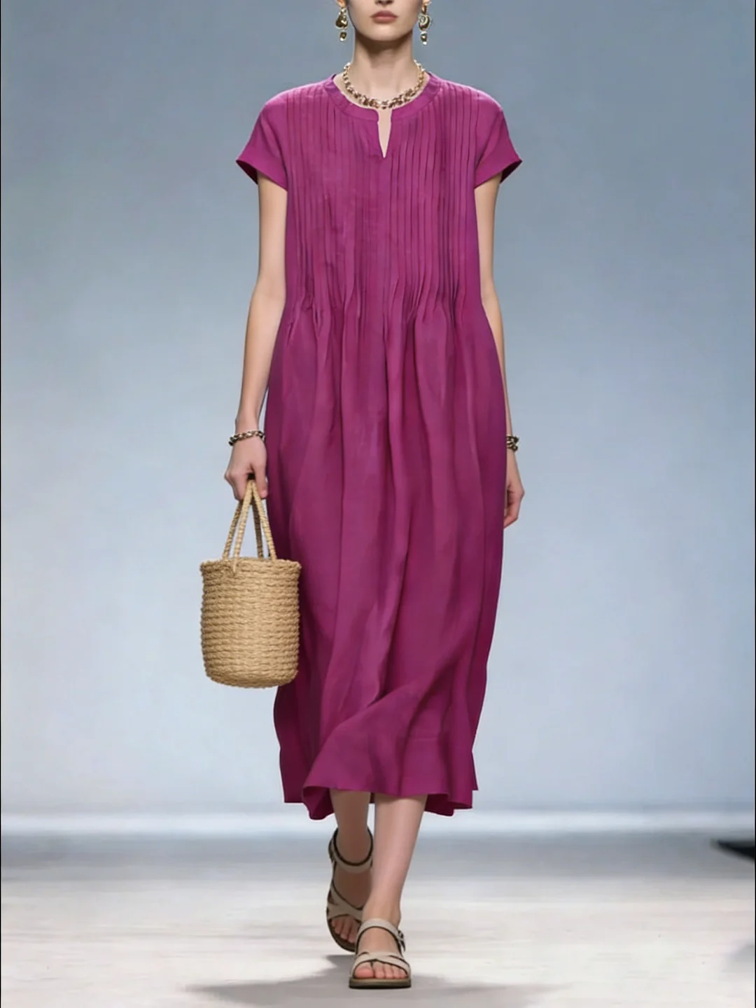 Customer ReviewsFrench Rose V Neck Wrinkled Pockets Patchwork Linen Dresses Summer