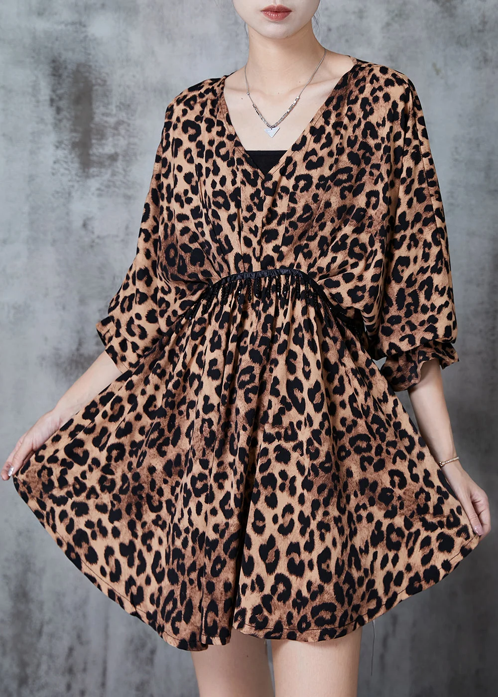 Modern Leopard Print Cinched Exra Large Hem Chiffon Tops Fall