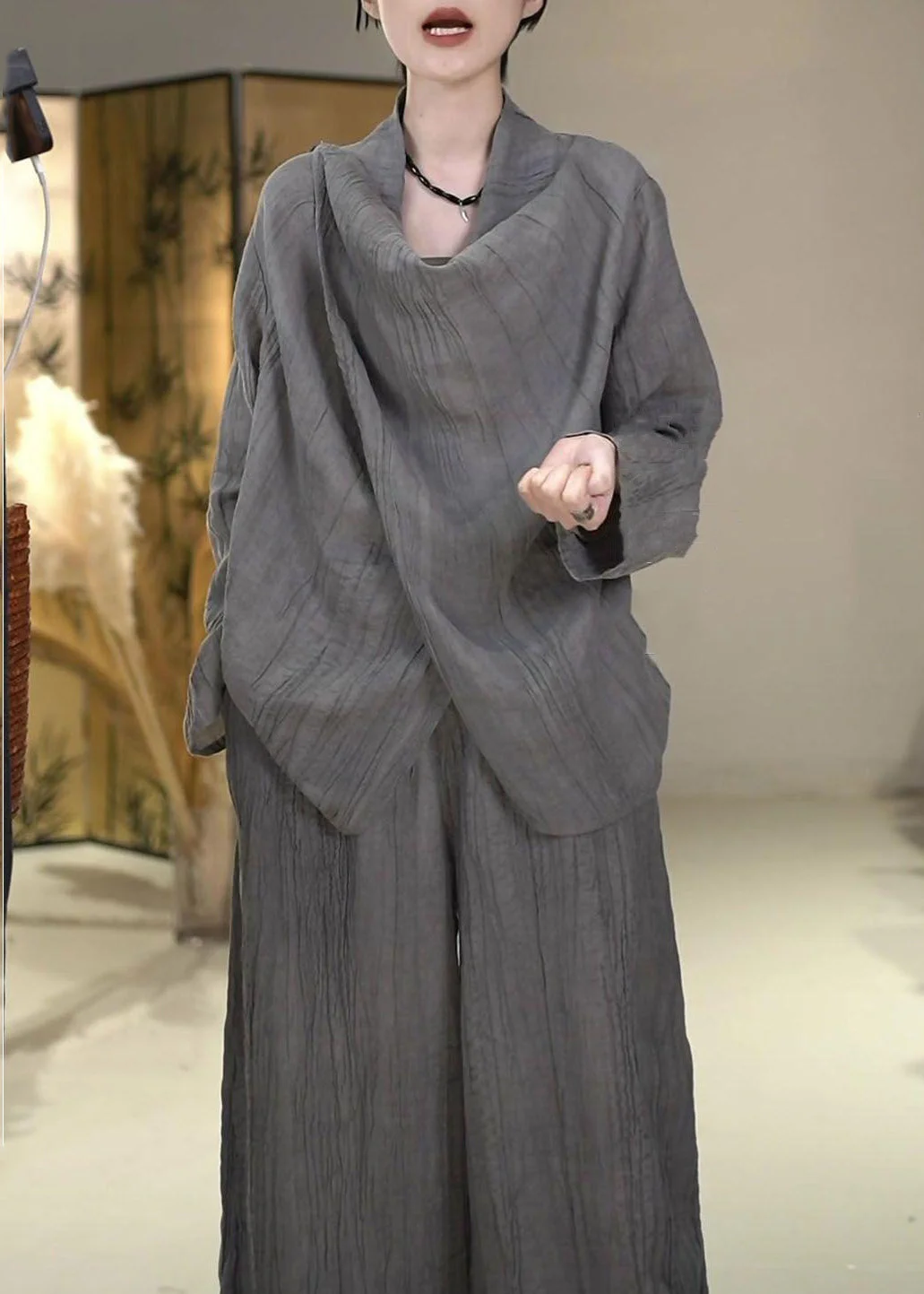 Customer ReviewsNew Grey Pockets Elastic Waist Linen Two Pieces Set Fall