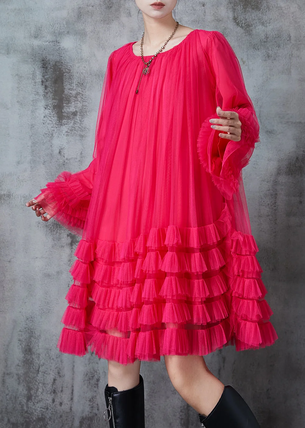 Rose Loose Tulle Holiday Dress Ruffled Flare Sleeve