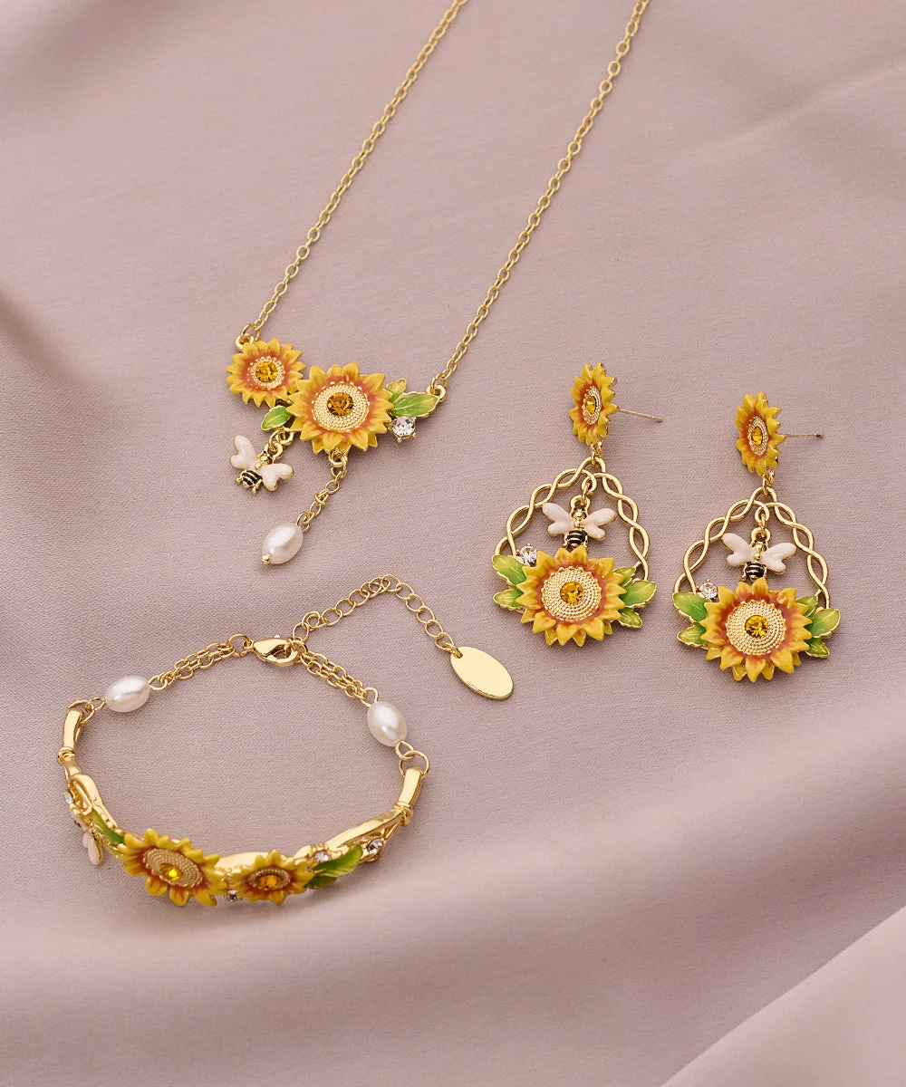 Customer ReviewsVintage Gold Zircon Sunflower Pearl Tassel Lariat Necklace Bracelet And Drop Earrings Three Piece Set