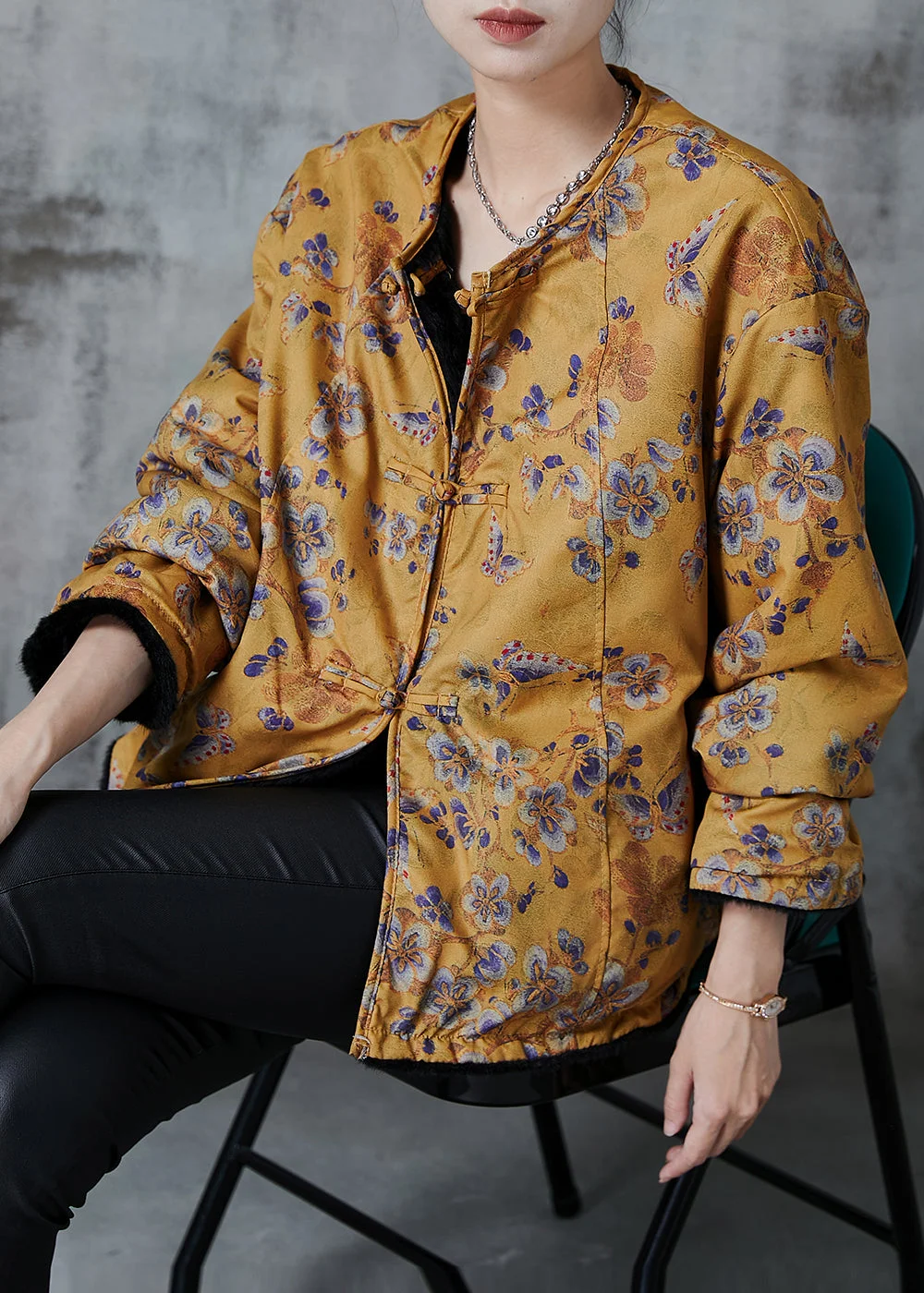 Vintage Yellow Print Faux Mink Hair Wear On Both Sides Coats Winter