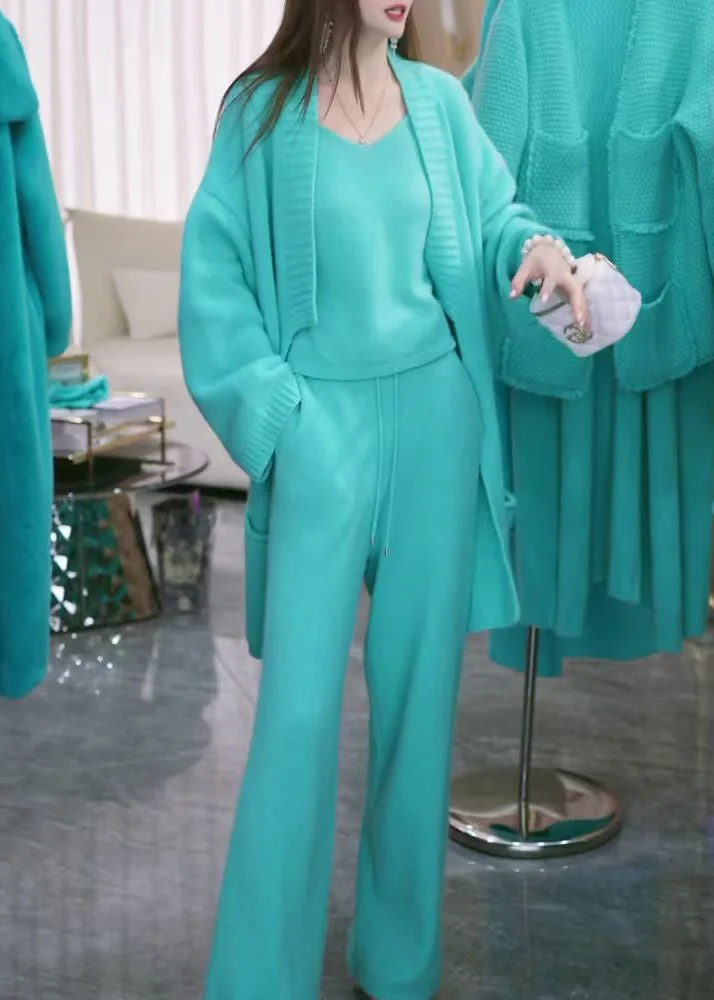 Customer ReviewsWomen Blue V Neck Pockets Knit Three-Piece Set Winter